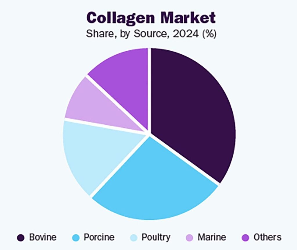 Collagen’s versatility in industries, particularly in cosmetics, food and beverages, and pharmaceuticals, further fuels its market growth. As the awareness of collagen’s benefits for anti-aging, gut health, and muscle recovery spreads, its adoption in diverse products continues to increase, propelling the market to new heights.