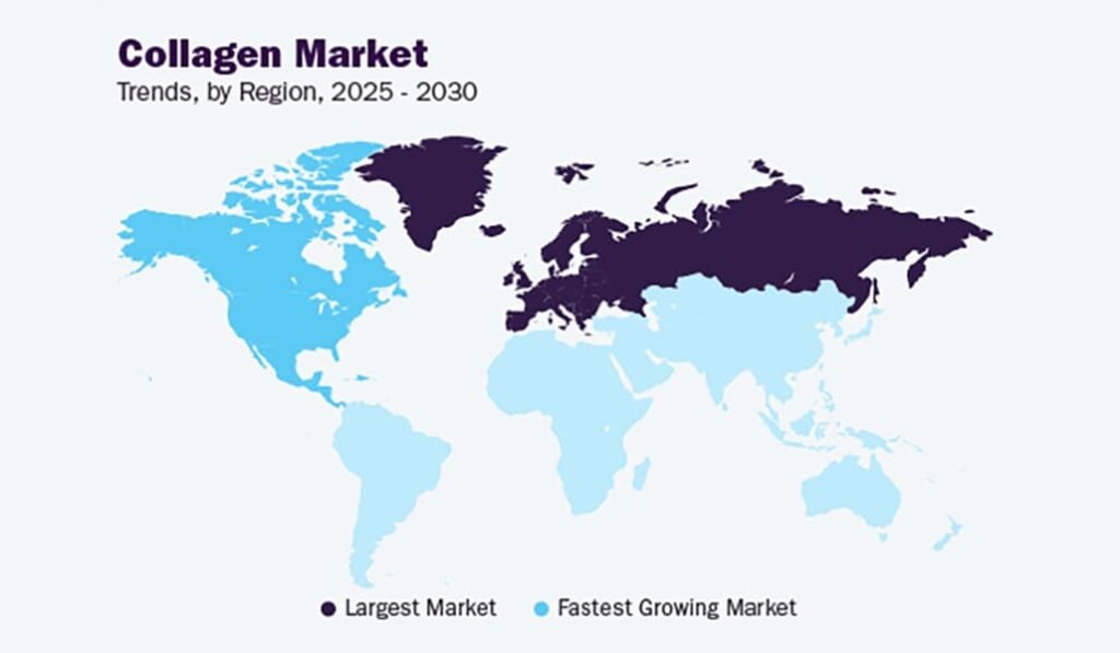 North America is set to emerge as a fastest growing region and expand at a CAGR of a 11.9% from 2025 to 2030, propelled byincreasing consumer awareness of the health benefits associated with collagen, such as joint support, skin elasticity, and overall wellness. The escalating demand for collagen-based supplements, functional foods, and skincare products is further fueling growth. With strong distribution networks, high disposable income, and a growing health-conscious population, North America is anticipated to experience significant growth in the collagen market.
