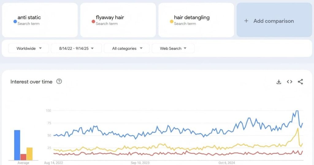 Searches for “anti static hair” and “flyaway control” rise in colder, drier months and in AC-heavy regions. Shoppers favor light, non-greasy mists and portable fixes, often bundling with anti-frizz/shine regimes for seasonal sets.