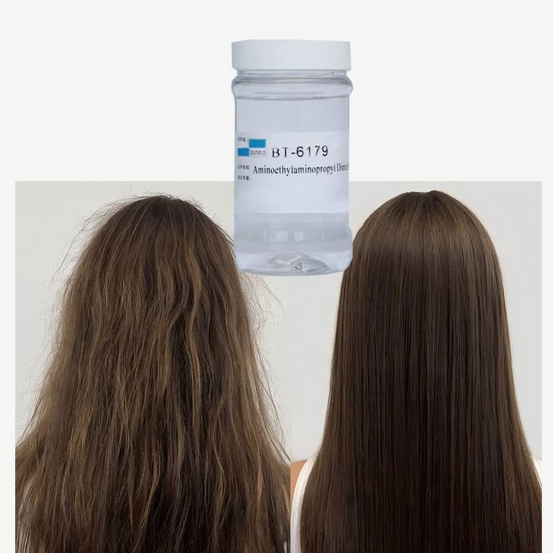 INCI: Amodimethicone (amino-functional silicone polymer) · CAS: commonly reported as 71750-80-6/71750-79-3 for amino-modified dimethicones; supplied as emulsions (e.g., with nonionic/cationic surfactants). Oil-compatible; cationically interactive; light/oxygen-stable as a polymer. (SpecialChem INCI overview; supplier listings) (SpecialChem)