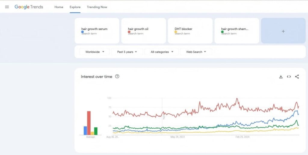 How buyers search & decide: demand skews to “gentle, non-drug, fast-absorbing” narratives with clean textures and measurable routine framing. Optimize PDPs for density-look routines, before/after compliant visuals, and clear usage timelines.
