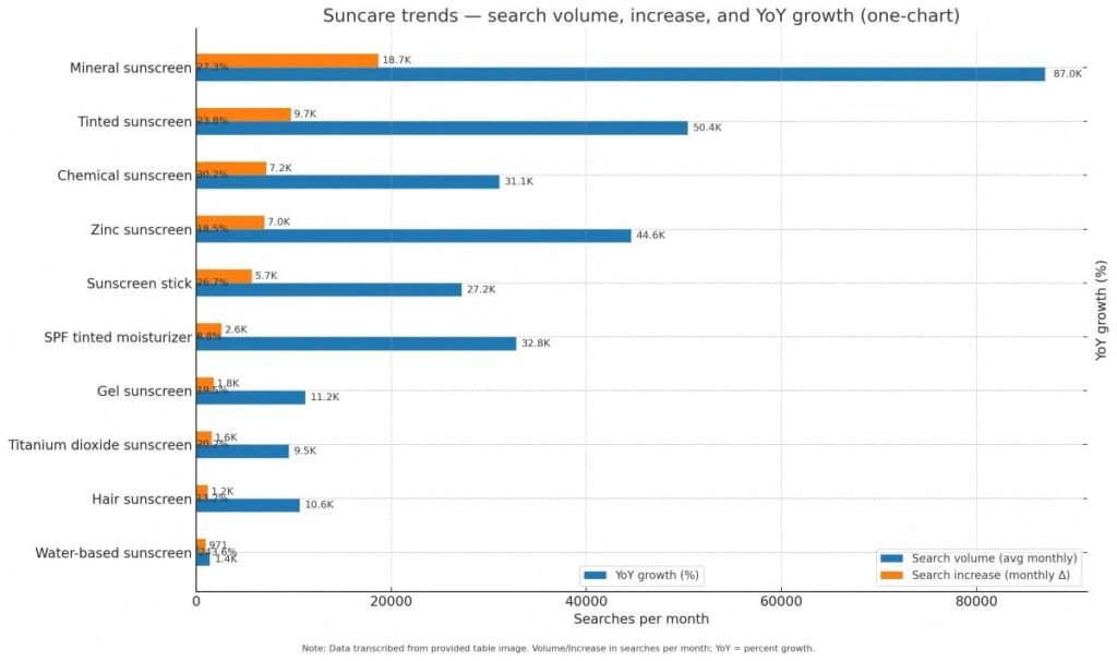 Global SPF searches are rising, with demand for reef-safe and multi-benefit sunscreens. Moisturizing, fast-absorbing, and tinted formulas dominate growth, offering brands opportunities in eco-conscious, high-performance, and dual-function skincare markets.