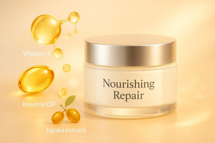 Centella Asiatica, Peptides (Palmitoyl Tripeptide-1), Shea Butter, Rosehip Oil