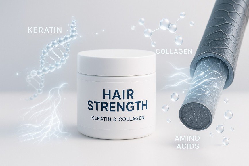 Hydrolyzed Keratin, Biotin (Vitamin B7), Collagen, Caffeine, Niacinamide